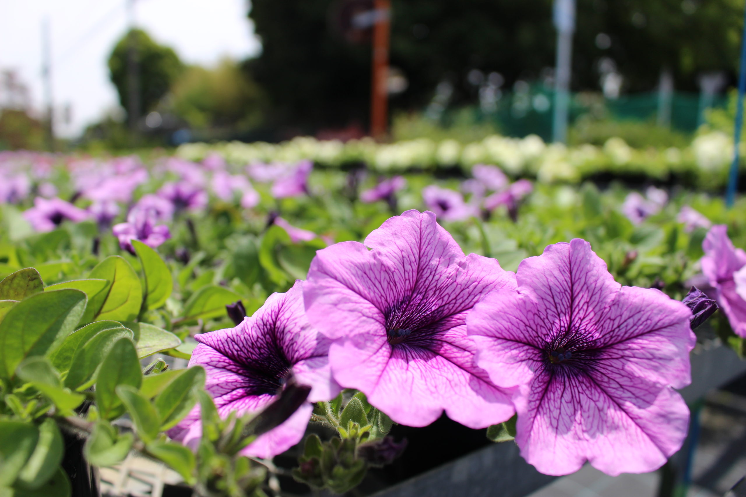 ペチュニアや日々草など春の花は、5月初旬頃から直売を行っております。詳しい営業時間は、公式LINEやインスタグラムにてお知らせしております。